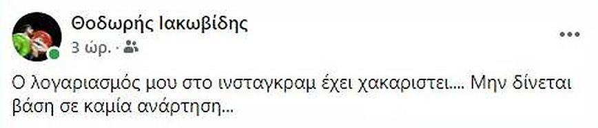 Στο στόχαστρο χάκερ φαίνεται πως βρέθηκε το προφίλ στο Instagram του αθλητή ης Άρσης Βαρών που συγκίνησε όλη την Ελλάδα, Θοδωρή Ιακωβίδη.