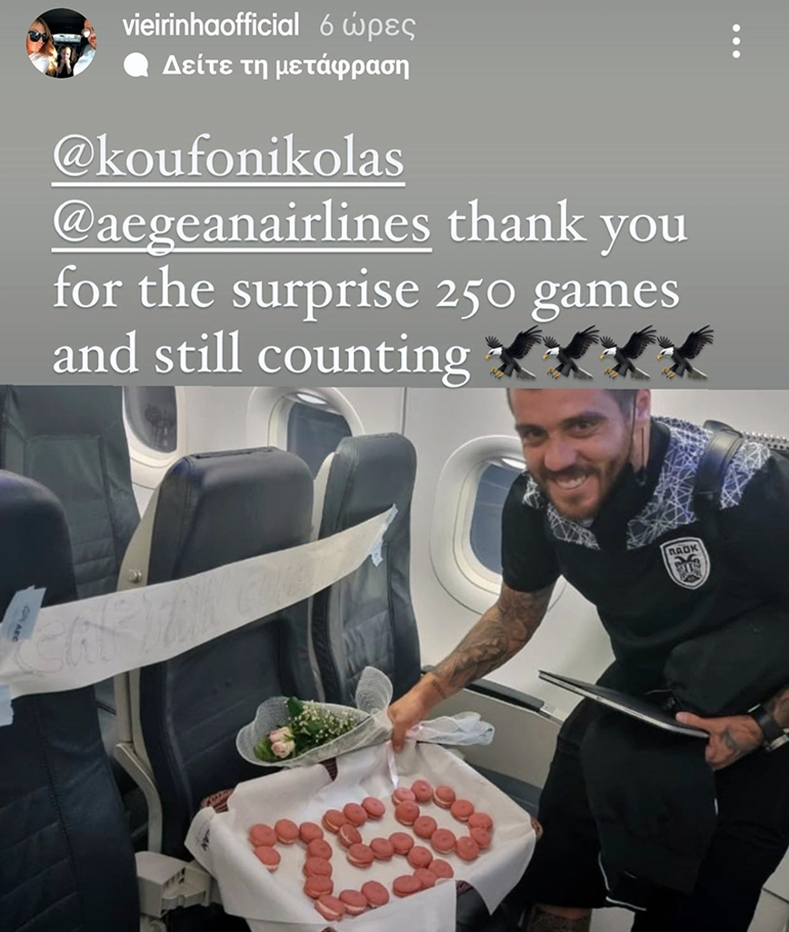 Ο αρχηγός του ΠΑΟΚ συμπλήρωσε 250 εμφανίσεις με την «ασπρόμαυρη» φανέλα και το γιόρτασε εν πτήση στην επιστροφή της αποστολής του «Δικεφάλου» από την Τρίπολη.