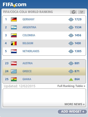 Στην Ευρώπη δεν υπήρχε αγωνιστική δραστηριότητα μετά τον Νοέμβριο και ως εκ τούτου η Εθνική Ελλάδας παρέμεινε σταθερή στην 24η θέση της Παγκόσμιας Κατάταξης της FIFA. Ωστόσο, σημειώθηκε σημαντική αλλαγή όσον αφορά τις χώρες που συμμετείχαν στο Κόπα Άφρικα και στο Κύπελλο Ασίας το προηγούμενο διάστημα.