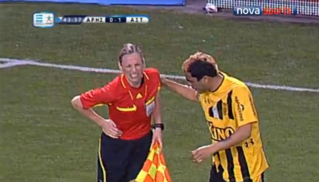 Ο Άρης υποδέχεται τον Αστέρα Τρίπολης κι ένας οπαδός των «κιτρίνων» πετάει μπουκάλι με νερό το οποίο χτυπάει την βοηθό Κουρομπύλια με τον διαιτητή Τριτσώνη να ζητάει την εκκένωση του «Κλεάνθης Βικελίδης». Όμως, η εκκένωση καθυστερεί να γίνει και αυτό έχει ως αποτέλεσμα την οριστικό διακοπή του αγώνα. Η τιμωρία που ακολουθεί για τους «κίτρινους» είναι σκληρή. ο Αρης χάνει το ματς στα χαρτιά με σκορ 3-0, ενώ παράλληλα αφαιρούνται τρεις βαθμοί από το πρωτάθλημα. Επίσης το «Κλεάνθης Βικελίδης» θα μείνει κλειστό για έναν αγώνα, ενώ οι Θεσσαλονικείς καλούνται να πληρώσουν και πρόστιμο 40.000.