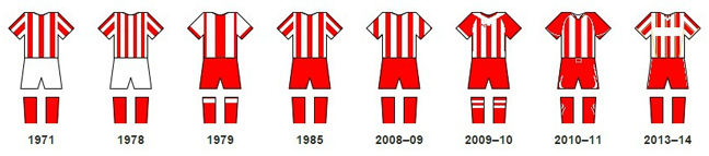 Δείτε παρακάτω ενδεικτικά ιστορικές αλλά και σύγχρονες φανέλες της ποδοσφαιρικής ομάδας του συλλόγου: