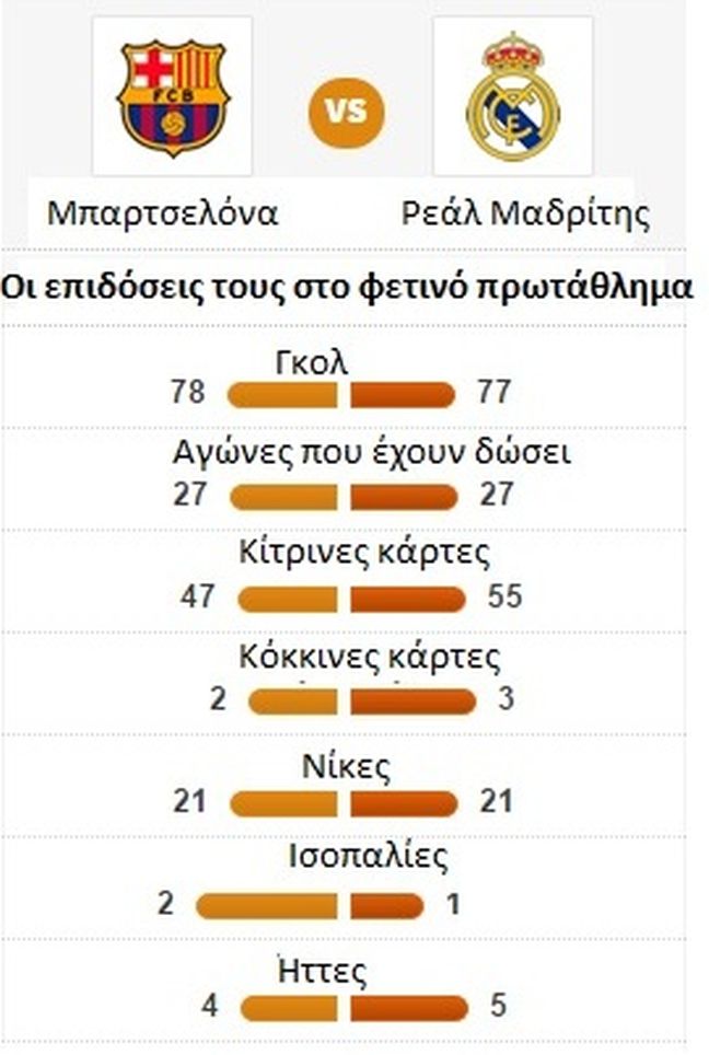 Αξίζει να σημειωθεί ότι η Μπαρτσελόνα έχει 22 πρωταθλήματα, ενώ η Ρεάλ έχει δέκα περισσότερα. Όσον αφορά την προϊστορία, οι δύο ομάδες έχουν δώσει 169 αγώνες στο πρωτάθλημα (!), σε αυτούς οι «μερένχες» έχουν 71 νίκες, 66 οι «μπλαουγκράνα» και 32 ματς έχουν λήξει ισόπαλα. Στο Καμπ Νου, τώρα, η Μπαρτσελόνα έχει 48 νίκες, 19 η «βασίλισσα της Ευρώπης» και 17 ματς έληξαν χωρίς νικητή.