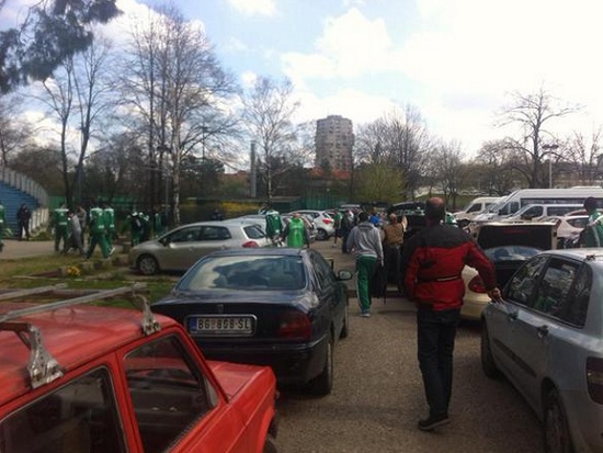 Συγκεκριμένα, λόγω ενός τρακαρίσματος σε δρόμο του Βελιγραδίου το πούλμαν που μετέφερε τους «πράσινους» έμεινε ακινητοποιημένο στην κίνηση, με αποτέλεσμα οι παίκτες και το προπονητικό επιτελείο του «τριφυλλιού» να μεταβούν με ταξί (επτά χρειάστηκαν συνολικά) στη «Χάλα Πιονίρ», προκειμένου να πραγματοποιήσουν την πρωινή τους προπόνηση.