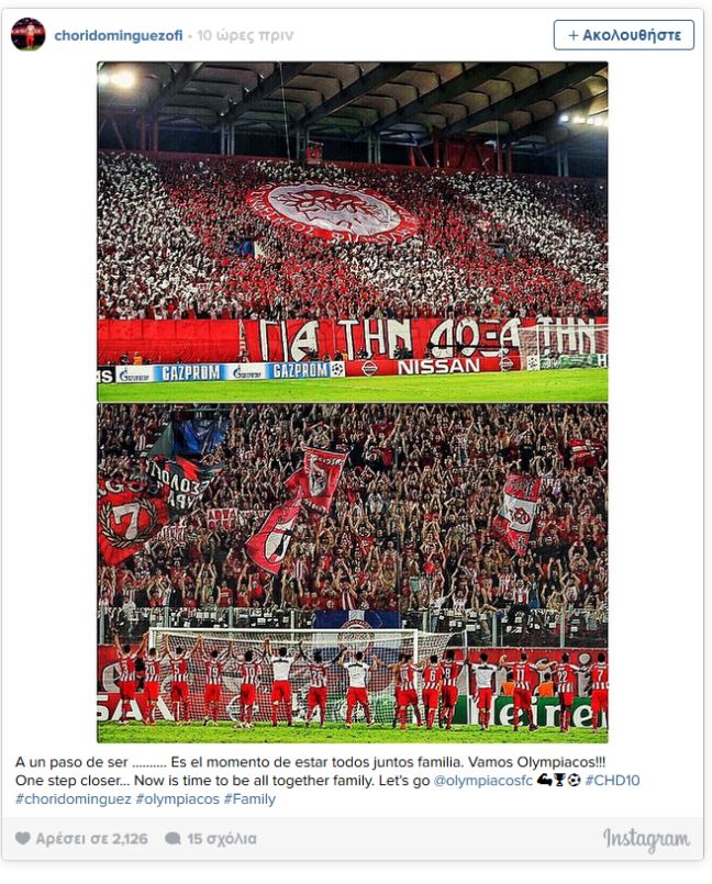 «Ένα βήμα πιο κοντά… Είναι η ώρα για να είμαστε οικογένεια. Πάμε Ολυμπιακέ»!, έγραψε χαρακτηριστικά.