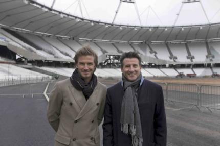 Τα Ολυμπιακά έργα του Λονδίνου για τους Αγώνες του 2012 επισκέφτηκε ο διάσημος ποδοσφαιριστής, Ντέιβιντ Μπέκαμ, συνοδεία του Ολυμπιονίκη και Προέδρου της Οργανωτικής Επιτροπής των Αγώνων, Σεμπάστιαν Κόε.