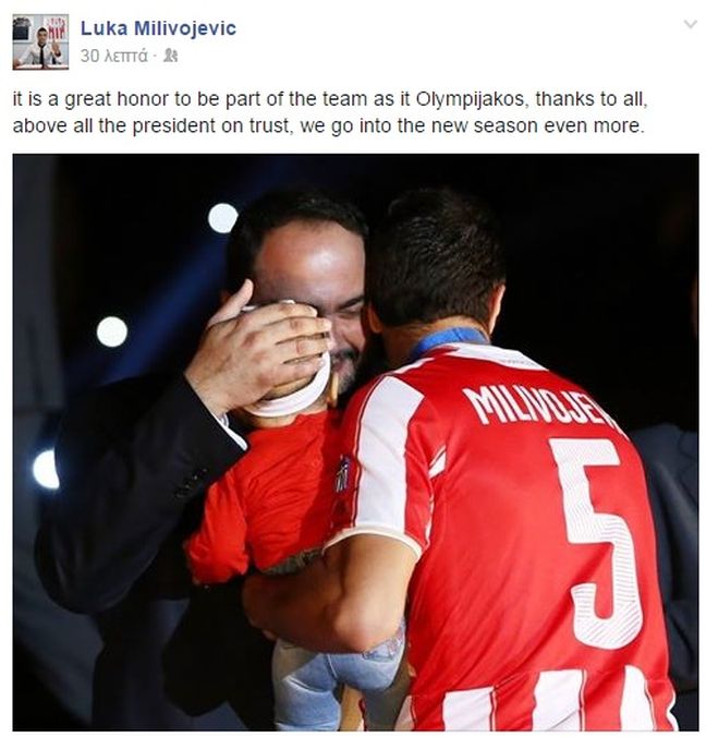 Τον ενθουσιασμό του για την επέκταση της συνεργασίας του με τον Ολυμπιακό μοιράστηκε μέσω Facebook ο Λούκα Μιλιβόγεβιτς.