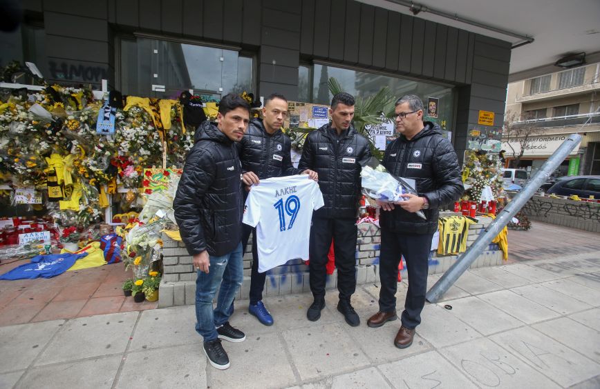Οι αντιπροσωπείες των δύο ομάδων, που βρίσκονται στη Θεσσαλονίκη για αγώνες, κατέθεσαν λουλούδια, τιμώντας τη μνήμη του αδικοχαμένου Άλκη.