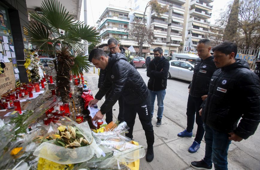 Τη μνήμη του Άλκη Καμπανού τίμησαν ο Ολυμπιακός Β’ και ο Ατρόμητος, με αντιπροσωπείες του να δίνουν το παρών στο σημείο που δολοφονήθηκε ο 19χρονος φίλος του Άρη.