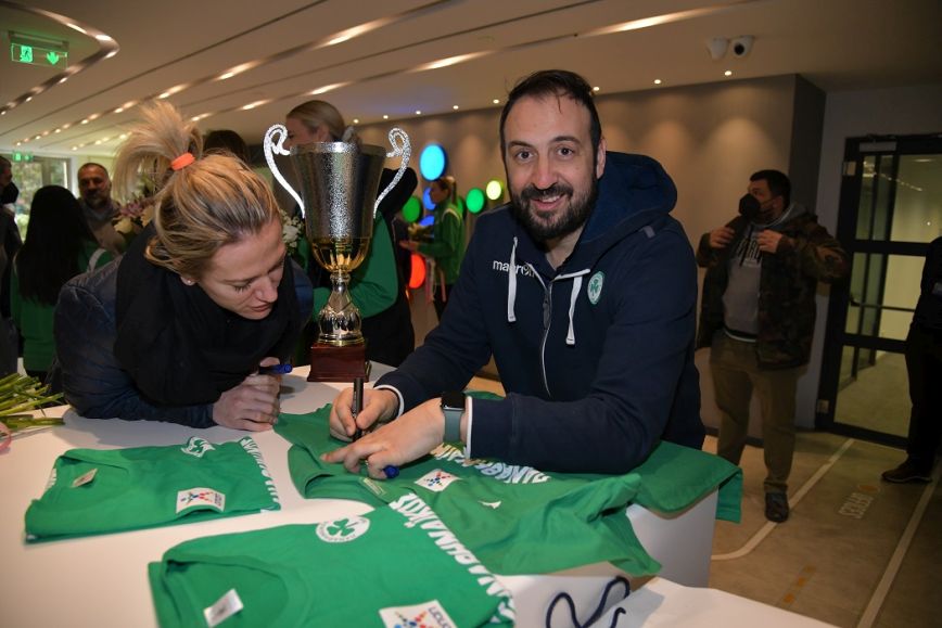 Ο κ. Χριστοφόρου συνεχάρη τις αθλήτριες του Παναθηναϊκού Εύα Χαντάβα, Πέννυ Ρόγκα, Αθήνα Παπαφωτίου, Μανωλίνα Κωνσταντίνου, Ειρήνη Χατζηευστρατιάδου, Μαργκαρίτα Στεπανένκο, Τζένιφερ Κρος, Μάρετ Γκροθούες, τον προπονητή Αποστόλη Οικονόμου και τον Team Manager Νίκο Λάζο και τους ευχήθηκε να συνεχίσουν τις επιτυχίες, τονίζοντας ότι ο ΟΠΑΠ, ως Μεγάλος Χορηγός του Παναθηναϊκού Α.Ο., βρίσκεται στο πλευρό τους.