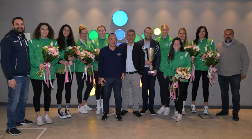 Λίγες ημέρες, μετά την κατάκτηση του Κυπέλλου Ελλάδας, που σηματοδοτεί την επιστροφή στα τρόπαια μετά από 11 χρόνια, η γυναικεία ομάδα βόλεϊ του Παναθηναϊκού επισκέφτηκε τα κεντρικά γραφεία του ΟΠΑΠ μαζί με το τρόπαιο.