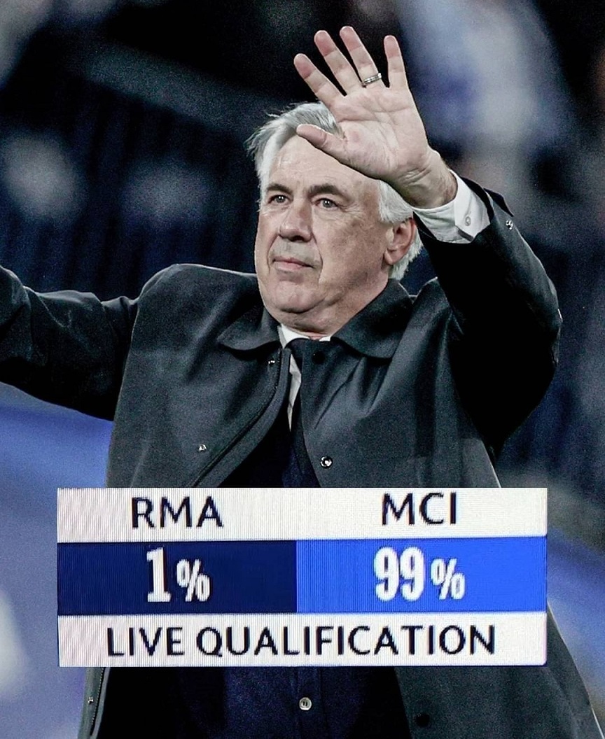 Σύμφωνα με το στατιστικό μοντέλο που χρησιμοποίησε το τηλεοπτικό δίκτυο BT Sport, η Ρεάλ Μαδρίτης στο 89ο λεπτό κι ενώ βρισκόταν πίσω στο σκορ με 1-0 από το 73′ χάρη στο γκολ του Ριγιάντ Μαχρέζ είχε μονάχα 1% για να πάρει την πρόκριση!