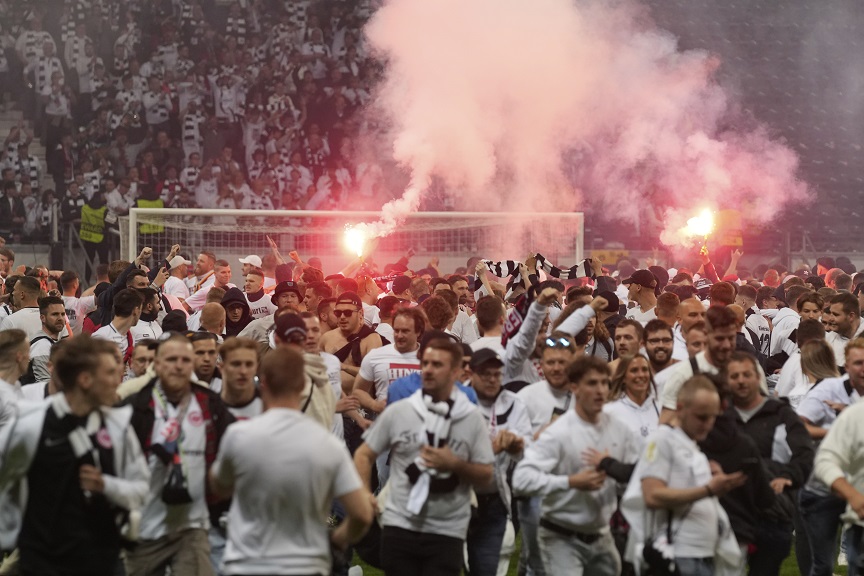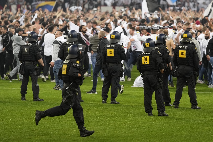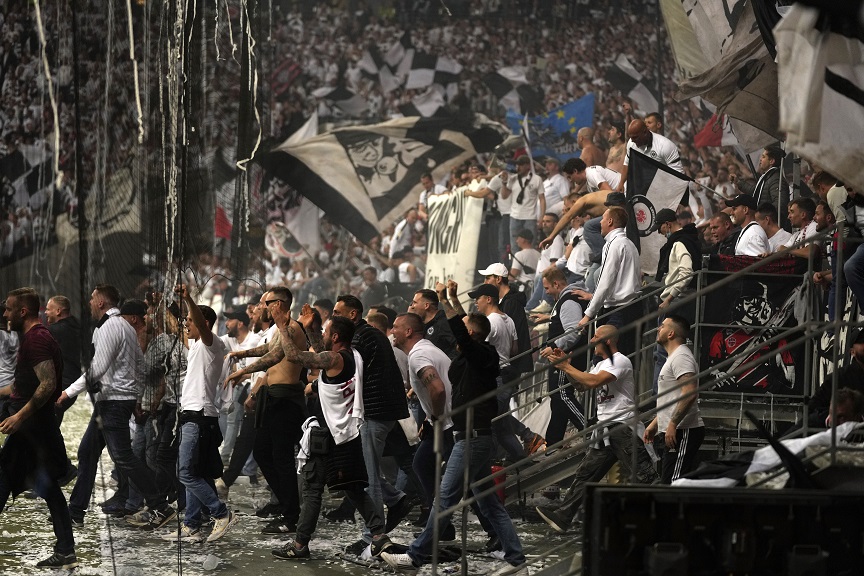 Σκηνές… χάους επικράτησαν μετά την λήξη του έτερου ημιτελικού του Europa League μεταξύ της Άιντραχτ Φρανκφούρτης και της Γουέστ Χαμ στο «Deutsche Bank Park», όπου οι γηπεδούχοι επικράτησαν με 1-0. Οι οπαδοί των Γερμανών εισέβαλαν στον αγωνιστικό χώρο για να πανηγυρίσουν με τους ποδοσφαιριστές και το προπονητικό τιμ. Οι αστυνομικές δυνάμεις και η υπηρεσία ασφαλείας του γηπέδου μάταια προσπάθησαν να τους σταματήσουν.