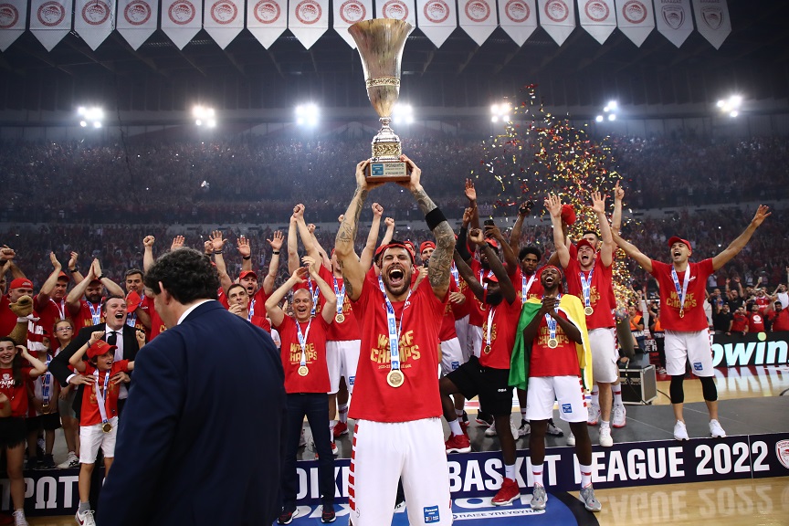 Μετά την ολοκλήρωση του ματς άρχισε το… πραγματικό ξεφάντωμα στο παρκέ του «ΣΕΦ», αλλά και η συγκίνηση. Με τα μεγάφωνα να παίζουν «από τους πρόποδες της γης, κατακτητές της κορυφής, με τη σημαία μας ψηλά», ένας – ένας οι πρωταγωνιστές του πρωταθλητή Ελλάδας Ολυμπιακού μπήκαν στον αγωνιστικό χώρο για τη στέψη.