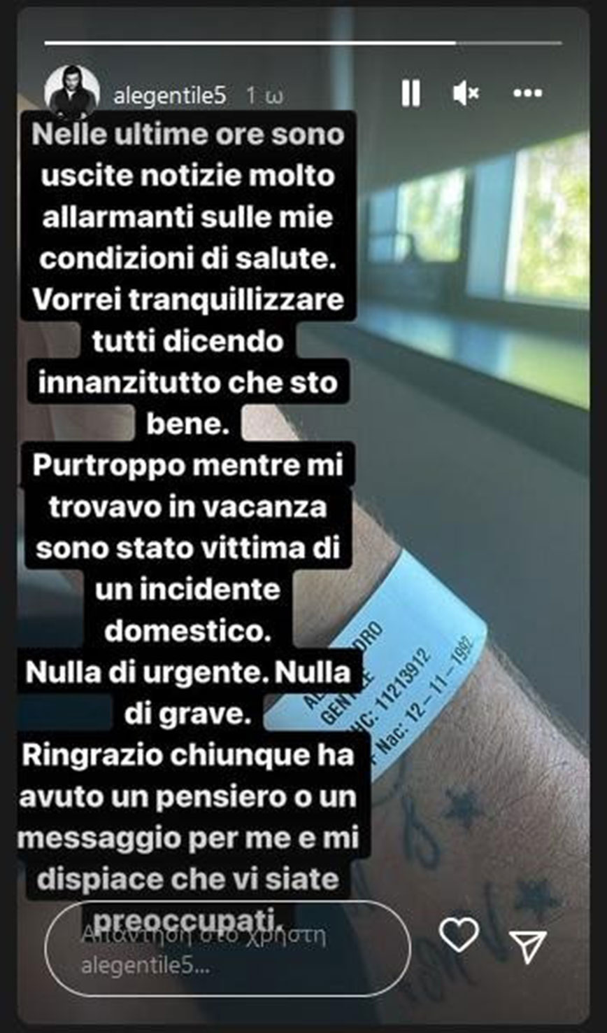 «Θα έρθω στην Ιταλία για θεραπεία. Ευχαριστώ όλους όσους με σκέφτηκαν και μου έστειλαν ένα μήνυμα και λυπάμαι που ανησυχήσατε».