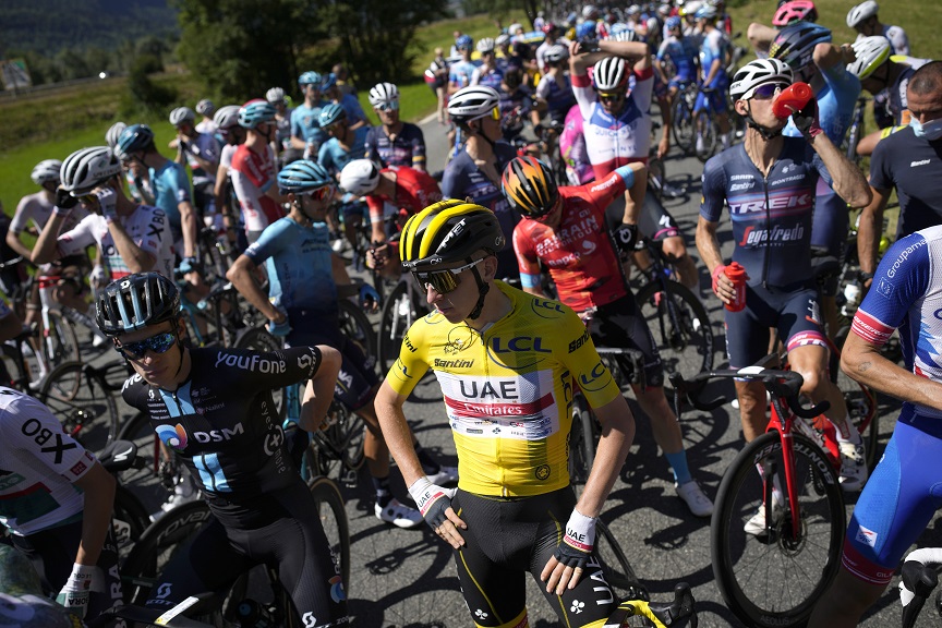 Μάλιστα, ορισμένοι από τους ποδηλάτες, όπως ο Ισπανός Μαρκ Σολέρ, της UAE Team Emirates, ομόσταβλος του πρωτοπόρου και φαβορί για να κερδίσει τον Ποδηλατικό Γύρο της Γαλλίας, Ταντέι Πόγκατσαρ, άφησαν τα ποδήλατά τους και έκατσαν μαζί με τους διαμαρτυρόμενους δείχνοντας την αλληλεγγύη τους στο αίτημά τους, ενώ άλλοι προσπαθούσαν να τους πείσουν να φύγουν ώστε να συνεχιστεί ο αγώνας. Άλλοι, πάλι, έκαναν… κύκλους προκειμένου να μην «παγώσουν».