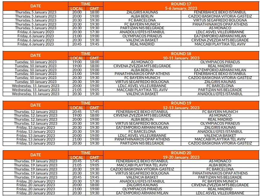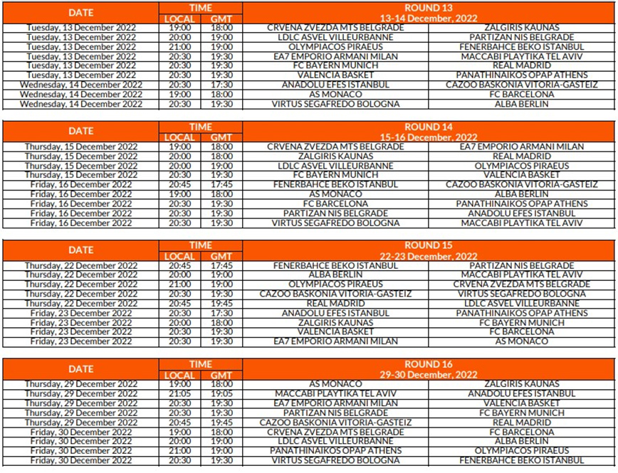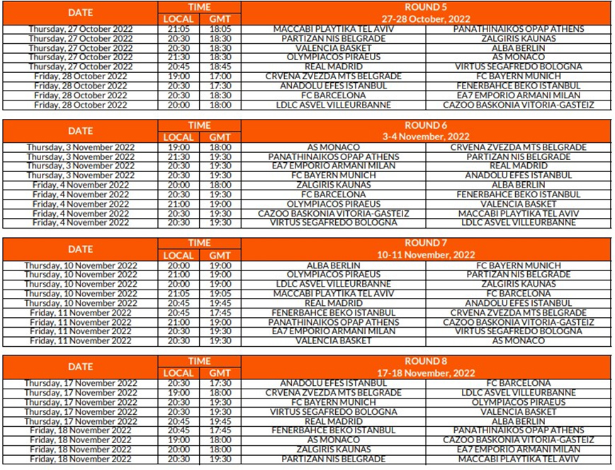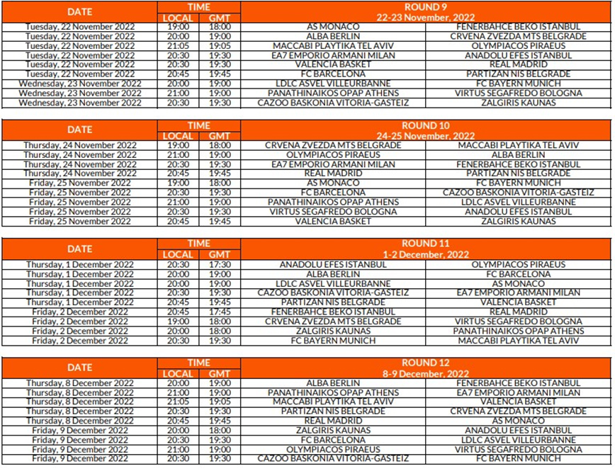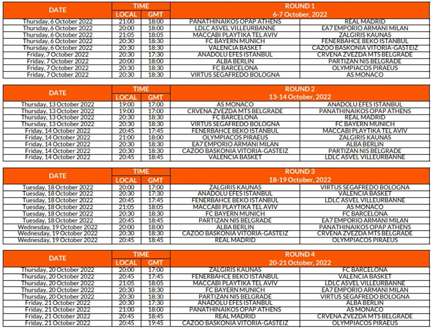 Δείτε αναλυτικά όλο το πρόγραμμα της Euroleague