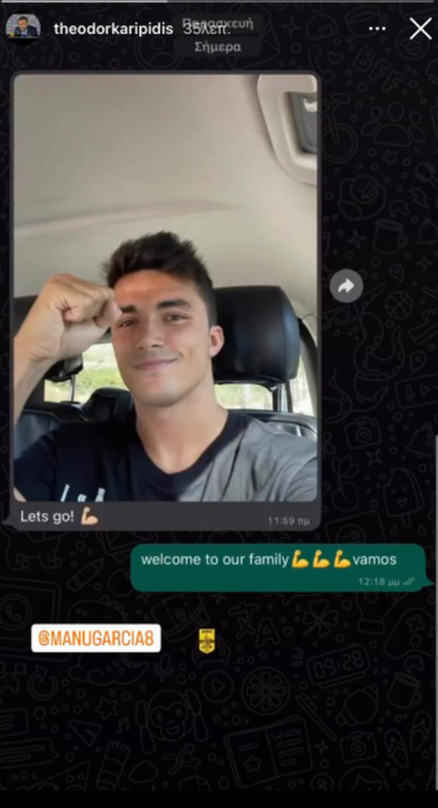 Αίσιο τέλος είχε η υπόθεση του Μανού Γκαρσία στον Άρη, με τον Θόδωρο Καρυπίδη να… βιάζεται για να τον καλωσορίσει στην οικογένεια της ομάδας της Θεσσαλονίκης.