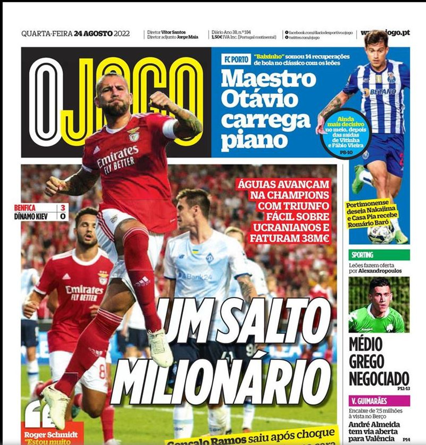 Η «A Bola» κάτω και αριστερά στο πρωτοσέλιδό της αναφέρει πως τα «λιοντάρια» έκαναν πρόταση στον Παναθηναϊκό για τον Σωτήρη Αλεξανδρόπουλο η οποία φτάνει τα 5 εκατ. ευρώ.