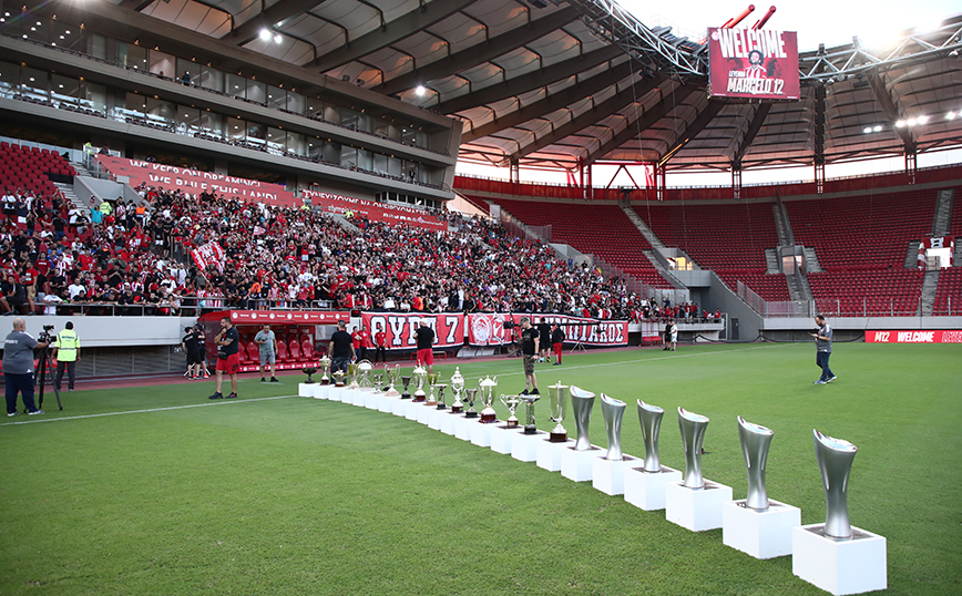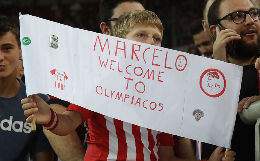 Σχεδόν 20.000 οπαδοί του Ολυμπιακού βρέθηκαν στις εξέδρες του γηπέδου και καλωσόρισαν τον Μαρσέλο στο κλαμπ.
