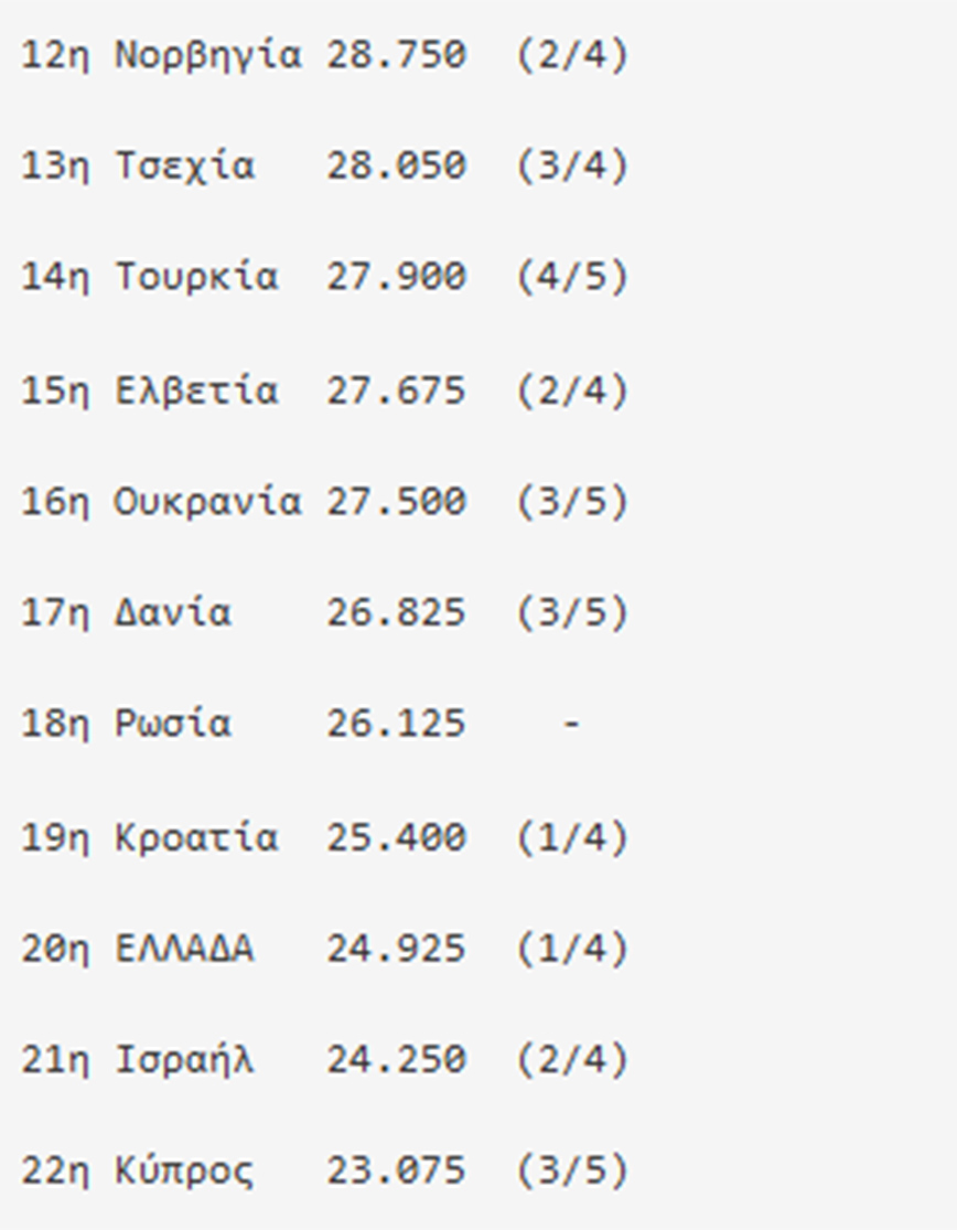 Η βαθμολογία από τις θέσεις 12-22 (σ.σ. σε παρένθεση οι ομάδες που συνεχίζουν στις ευρωπαϊκές διοργανώσεις και όσες άρχισαν):