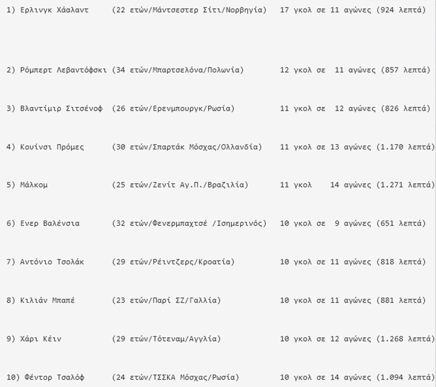 Η πρώτη δεκάδα των κορυφαίων σκόρερ στα ευρωπαϊκά γήπεδα: