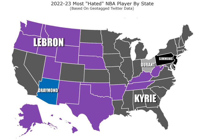 Έρευνα για τον πιο μισητό παίκτη στο ΝΒΑ πραγματοποίησε μία ιστοσελίδα, βάσει στοιχείων που συνέλεξε από το Twitter. Μάλιστα, δύο αθλητές βρίσκονται με μεγάλη διαφορά στις πρώτες θέσεις, καθώς μονοπωλούν την πρώτη θέση σε 45 από τις 50 πολιτείες των ΗΠΑ.