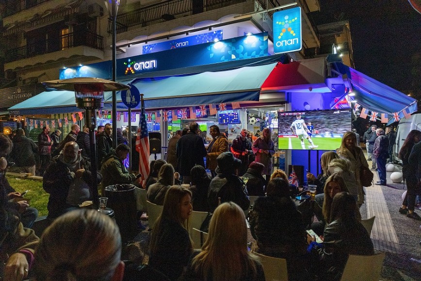 Στα χρώματα της Αγγλίας και των ΗΠΑ ντύθηκαν, χθες, τα καταστήματα ΟΠΑΠ και υποδέχθηκαν τους ποδοσφαιρόφιλους για να παρακολουθήσουν τον αγώνα τον δύο Εθνικών Ομάδων.