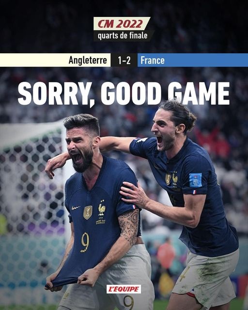 Σε μία κίνηση που δεν συνηθίζει προχώρησε η Equipe στο πρωτοσέλιδό της, έπειτα από τη νίκη της Γαλλίας επί της Αγγλίας με 2-1 για τα προημιτελικά του Παγκοσμίου Κυπέλλου.