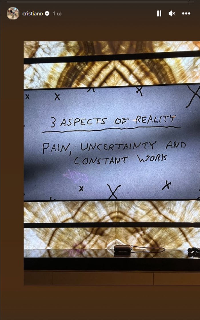 Στο μεταξύ, μ’ ένα ιδιαίτερο story στο Instagram παρουσίασε τις τρεις πτυχές της πραγματικότητας, πιθανώς της δικής του. «Πόνος, αβεβαιότητα και συνεχής δουλειά», ήταν το μήνυμα που έστειλε στους περισσότερους από 500 εκατομμύρια followers του στη συγκεκριμένη πλατφόρμα κοινωνικής δικτύωσης.
