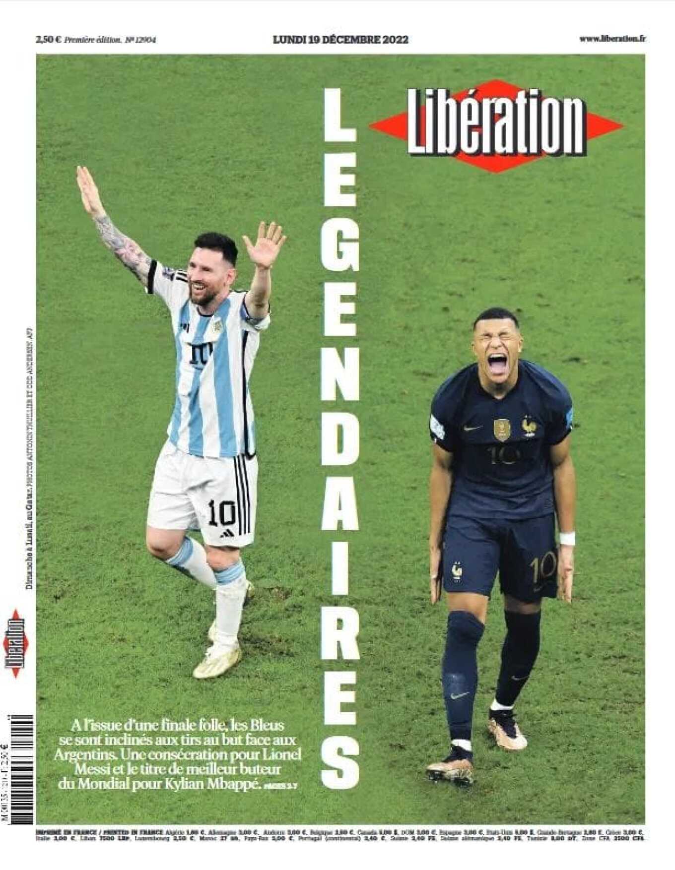 Η Liberation από την πλευρά της αφιερώνει το εξώφυλλο της Δευτέρας σε μια φωτογραφία όπου απεικονίζονται οι δύο άσσοι του ποδοσφαίρου σε μοντάζ της εφημερίδας με τον μοναδικό χαρακτηρισμό «Θρύλοι».