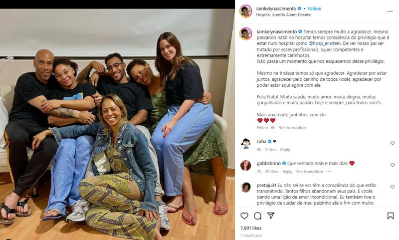 Την ώρα που ο Πελέ δίνει μάχη για να κρατηθεί στη ζωή, η κόρη του Κέλι Νασιμέντο ευχαρίστησε το προσωπικό του νοσοκομείου που τον φροντίζει, ενώ έδειξε να εκτιμά τα Χριστούγεννα που πέρασε δίπλα στον πατέρα της, παρότι η κατάσταση είναι αρκετά δύσκολη.