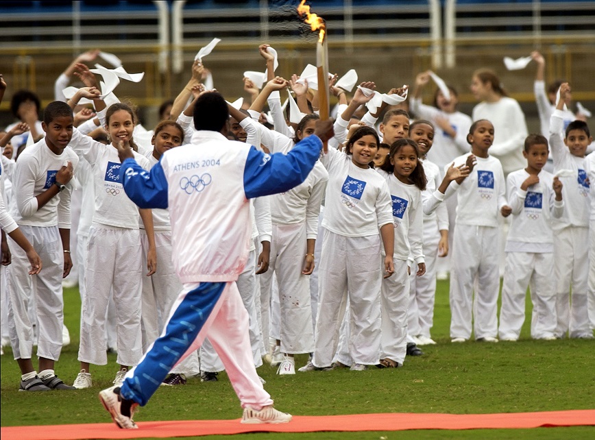 Ακολουθούν φωτογραφίες του Associated Press με τον Πελέ να μεταφέρει τη φλόγα των Ολυμπιακών Αγώνων του 2004: