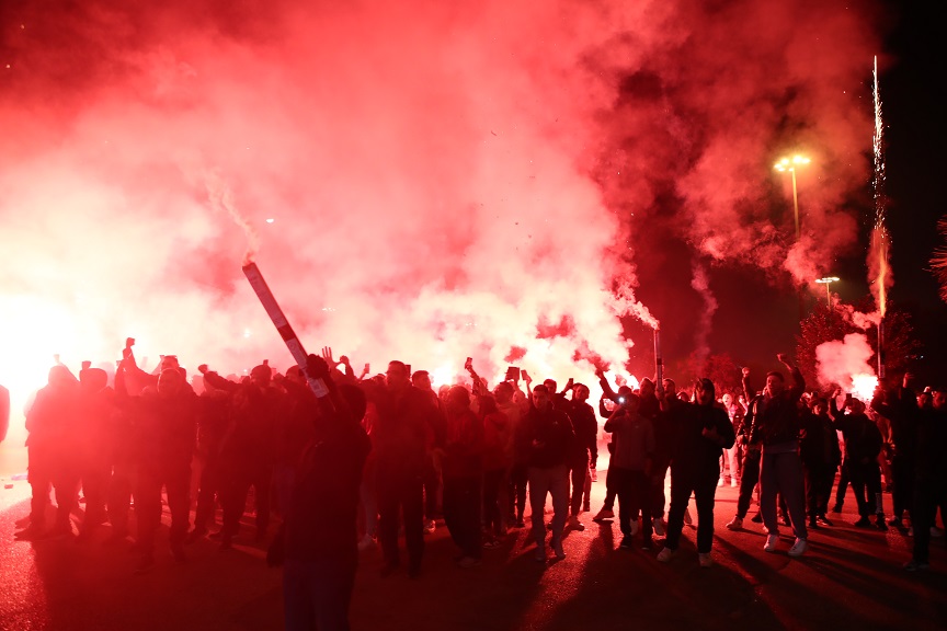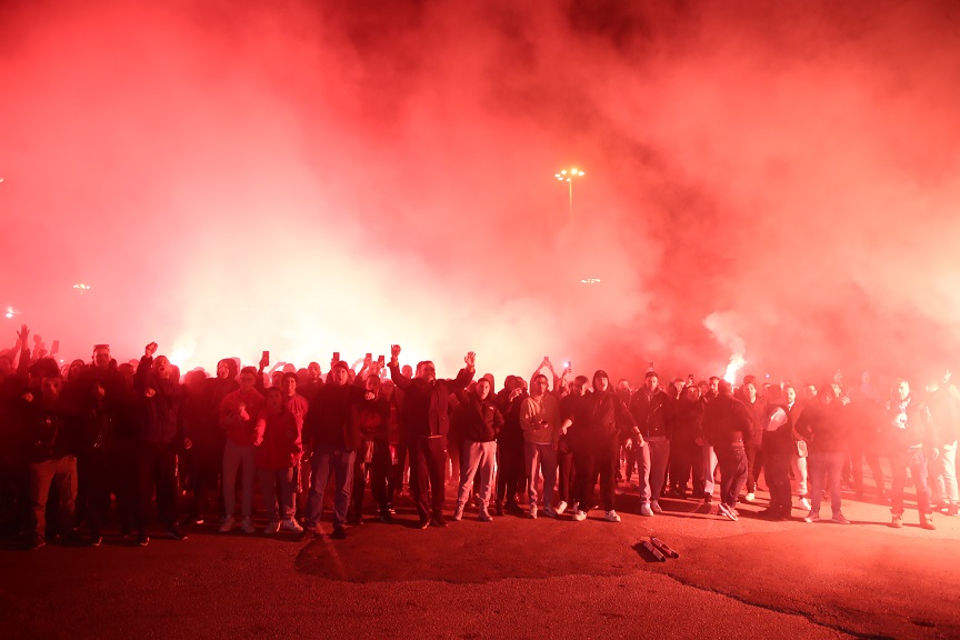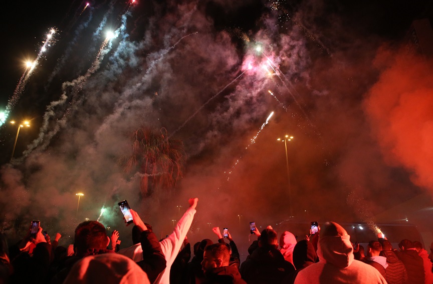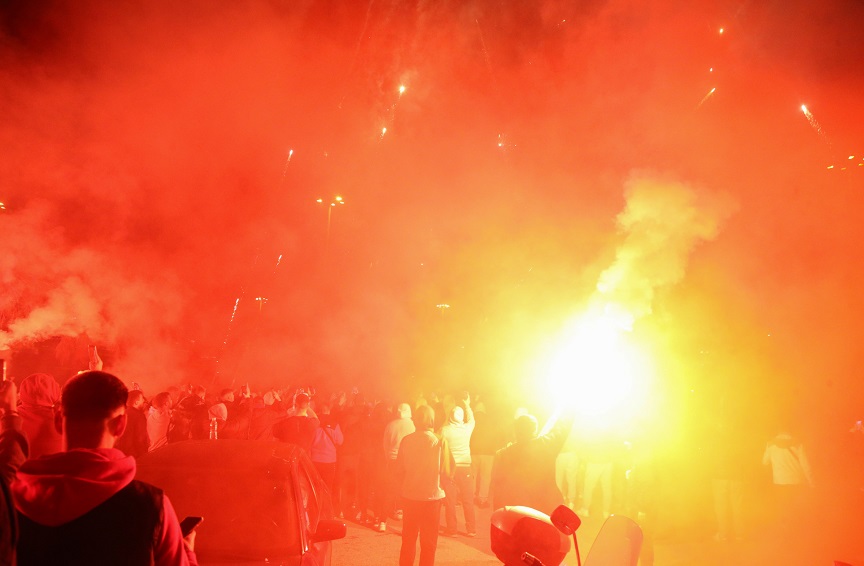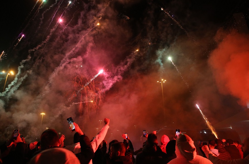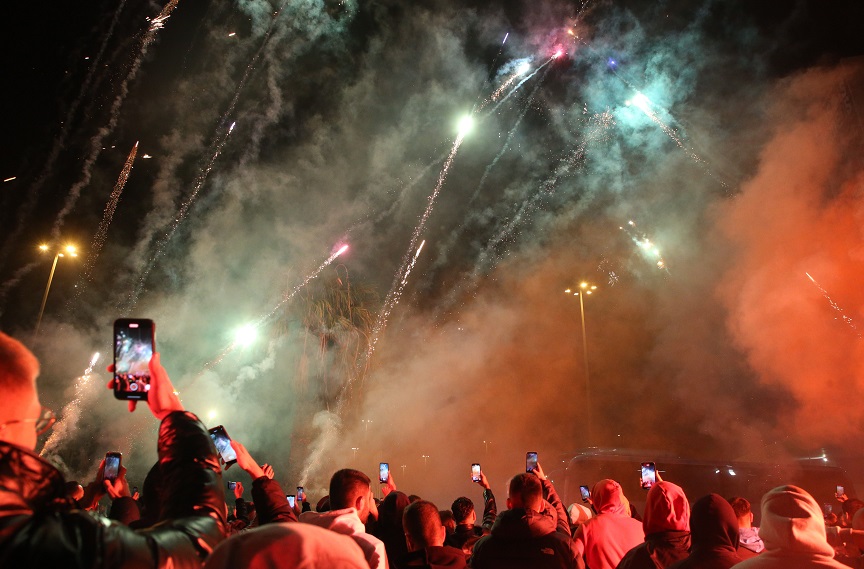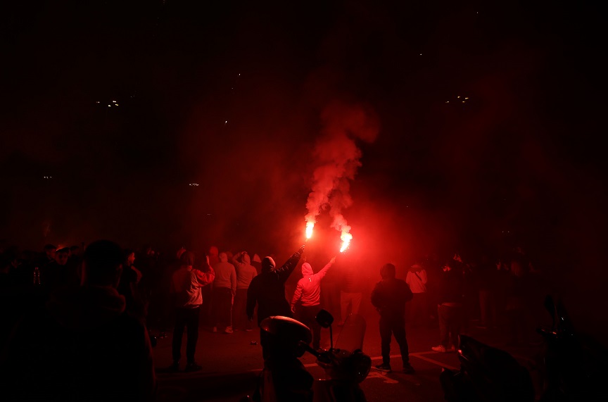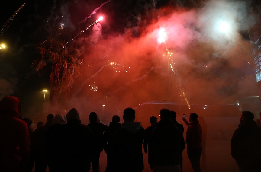 Με καπνογόνα και βεγγαλικά που έκαναν τη… νύχτα-μέρα, οι οπαδοί των «ερυθρόλευκων» υποδέχθηκαν τους παίκτες και το προπονητικό τιμ, ενώ αποθέωσαν και τους ιδιοκτήτες αδερφούς Αγγελόπουλους, καθώς ο επίλογος στο 2022 ήταν αξιομνημόνευτος με τον Ολυμπιακό να πανηγύριζε τη 10η συνεχόμενη νίκη του κόντρα στο μεγάλο του αντίπαλο.