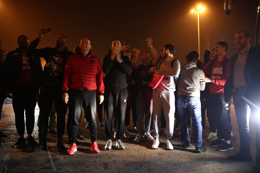 Περίπου 500 οπαδοί του Ολυμπιακού συγκεντρώθηκαν τις πρώτες πρωινές ώρες στον περιβάλλοντα χώρο του «Σταδίου Ειρήνης και Φιλίας» στο Φάληρο προκειμένου να υποδεχθούν την αποστολή της ομάδας μπάσκετ μετά από την σπουδαία νίκη της με 95-71 επί του Παναθηναϊκού για τη 16η αγωνιστική της Euroleague.