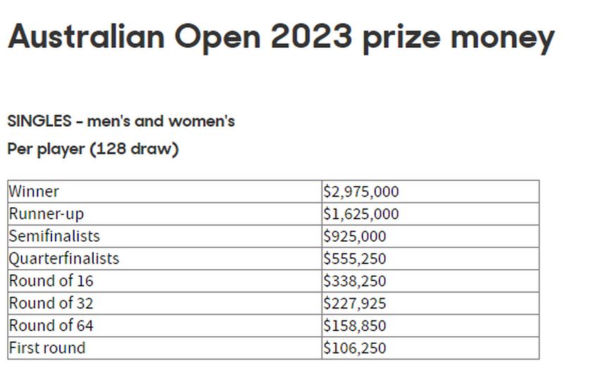 Ο ηττημένος του τελικού θα εισπράξει το ποσό του 1.625.000 δολαρίων, ενώ αν κερδίσει, εκτός από το Νο1 στην παγκόσμια κατάταξη, θα πάρει και το ποσό των 2.975.000 δολαρίων.