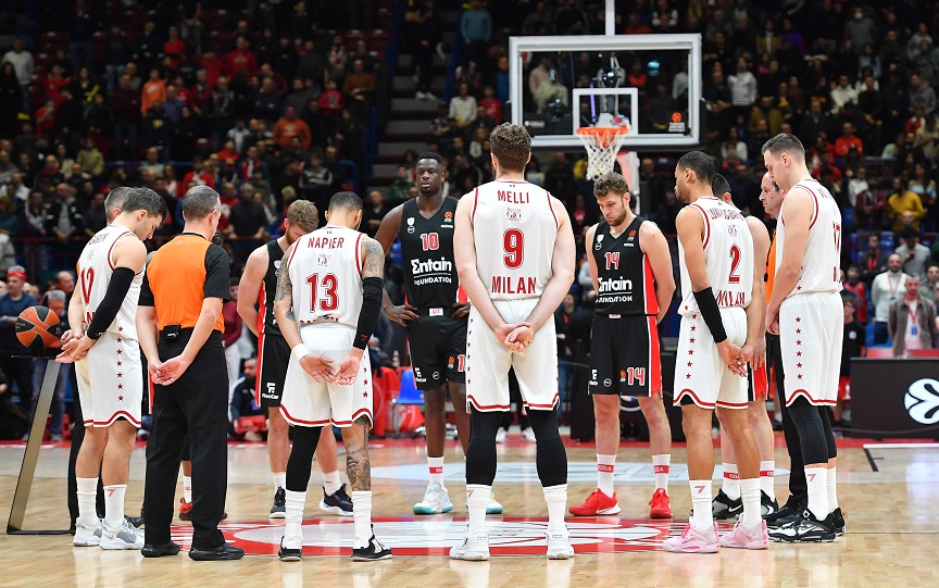 Η Αρμάνι Μιλάνο υποδέχθηκε τον Ολυμπιακό και τους χίλιους οπαδούς των «ερυθρόλευκων» με μια ελληνική σημαία στα μάτριξ του γηπέδου, ενώ τηρήθηκε ένα λεπτό σιγής στη μνήμη των θυμάτων της τραγωδίας στα Τέμπη.