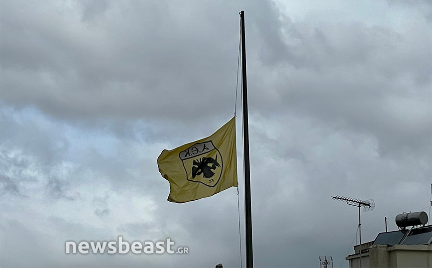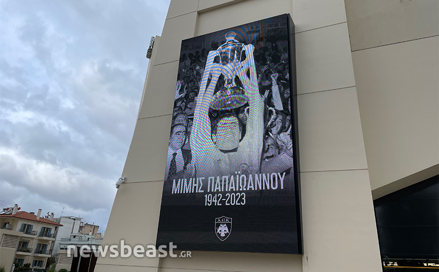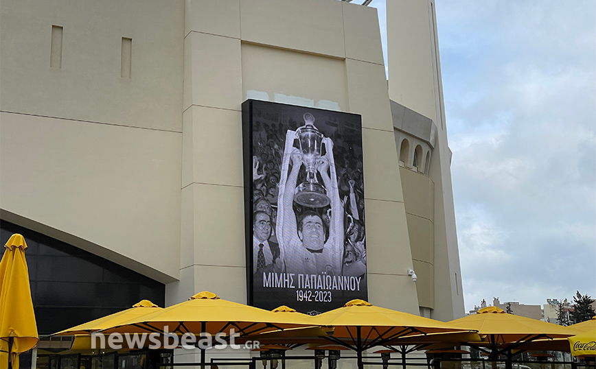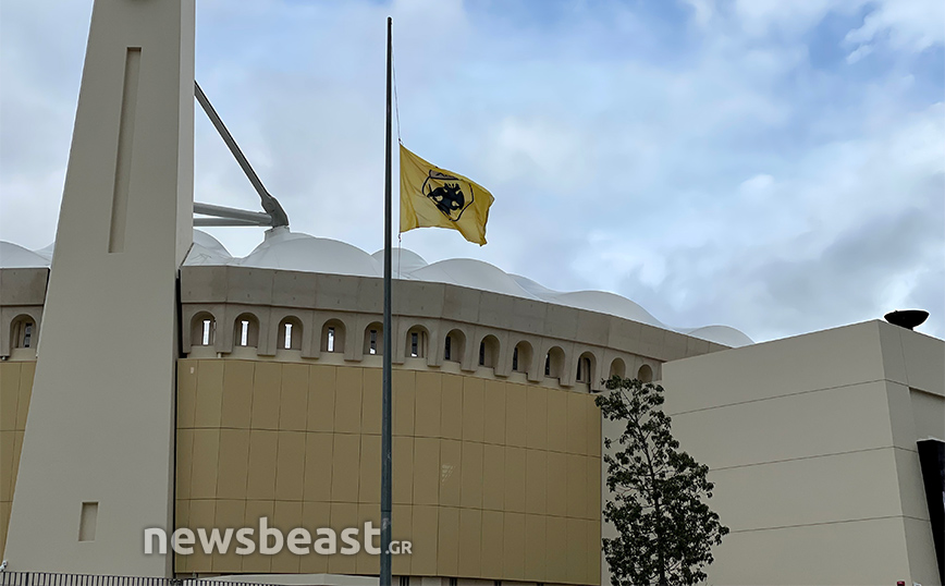 Βαρύ είναι από την Τετάρτη (17/3) το πένθος στην οικογένεια της ΑΕΚ λόγω του θανάτου τεράστιου Μίμη Παπαϊωάννου. Η «κιτρινομαύρη» ΚΑΕ εκφράζει τη θλίψη της με της σημαίες της ομάδας στην OPAP Arena να κυματίζουν μεσίστιες ενώ δύο γιγαντοοθόνες δείχνουν τον θρύλο της Μίμη.