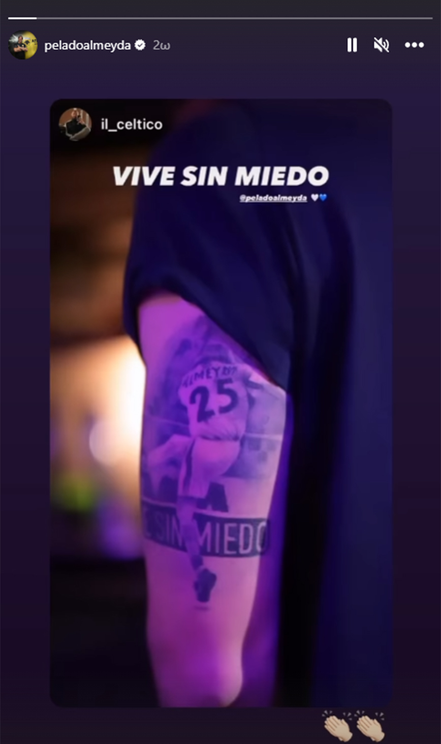 Ο θαυμαστής του Αλμέιδα μοιράστηκε στον προσωπικό του λογαριασμό στο Instagram το τατουάζ του, γράφοντας «Ζήσε χωρίς φόβο».