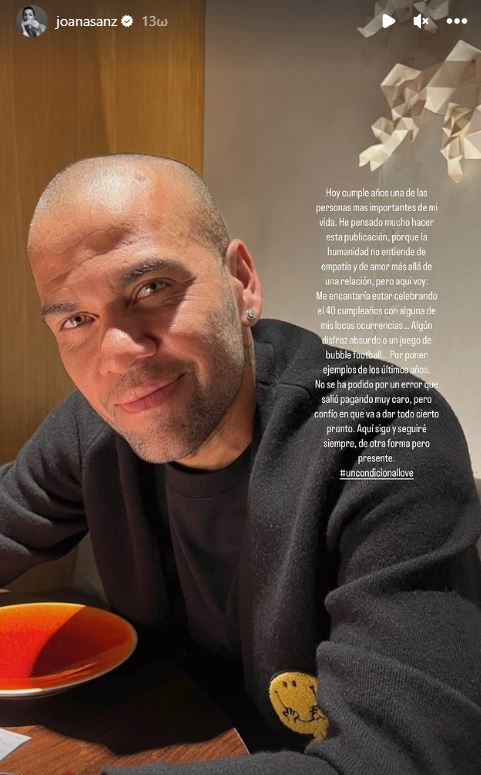 Στη φυλακή περνά τα 40α γενέθλιά του ο Ντάνι Άλβες, με τη σύζυγό του Χοάνα Σανθ να μην τον ξεχνά, παρότι έχει ξεκινήσει τις διαδικασίες για το διαζύγιο, σημειώνοντας ότι θα είναι πάντα δίπλα του, έστω και με διαφορετικό τρόπο.