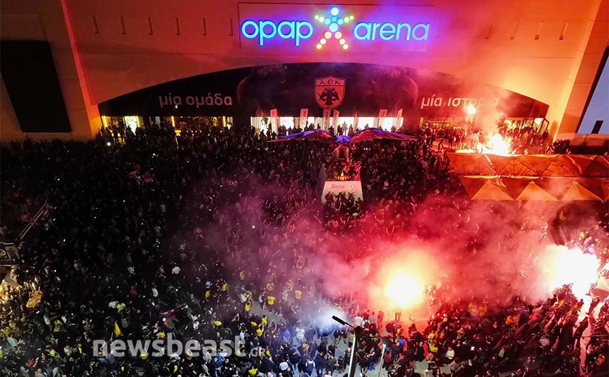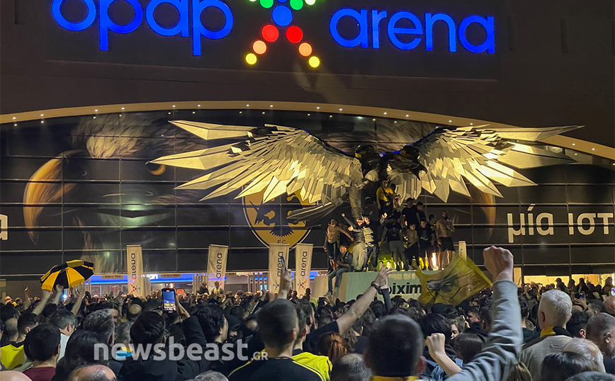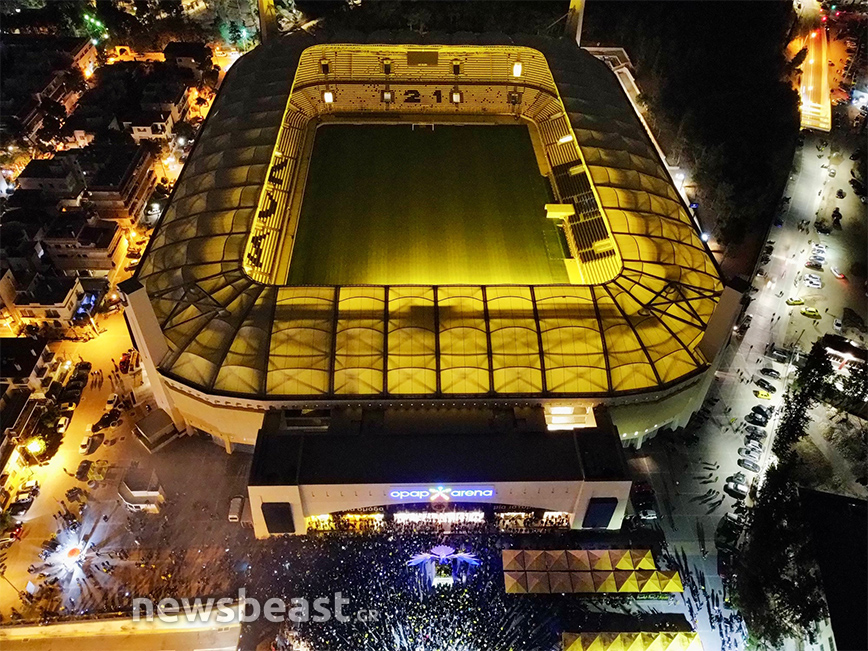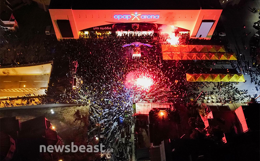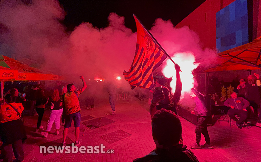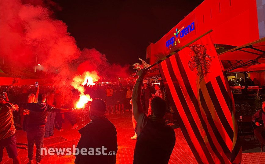 Με την κούπα προ των… πυλών, η Νέα Φιλαδέλφεια εδώ και ώρες βρίσκεται στο… πόδι για τους εν δυνάμει πρωταθλητές με δεκάδες χιλιάδες κόσμου να πανηγυρίζουν και να φωνάζουν για την Ένωση κυματίζοντας τις σημαίες και τα κασκόλ τους, ενώ φυσικά δεν λείπουν και τα βεγγαλικά, που έκαναν τη νύχτα-μέρα έξω από την «OPAP Arena». Το πάρτι, δε, δεν αναμένεται να τελειώσει γρήγορα καθώς οι οπαδοί της Ένωσης περιμένουν την αποστολή από τη Θεσσαλονίκη, η οποία είναι προγραμματισμένη να πετάξει στις 00:50.