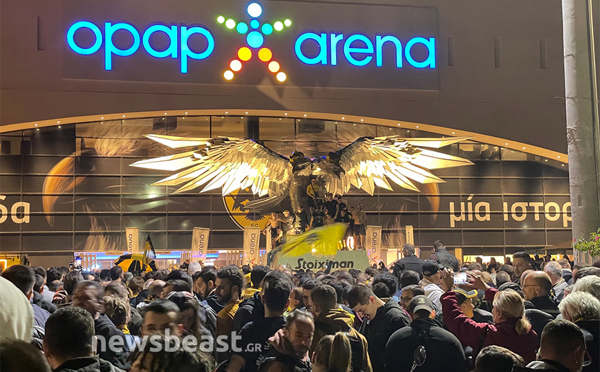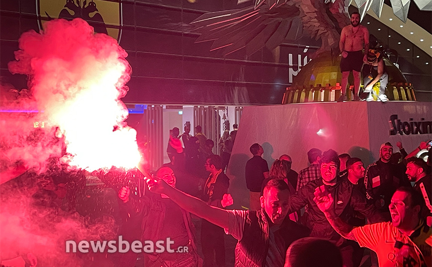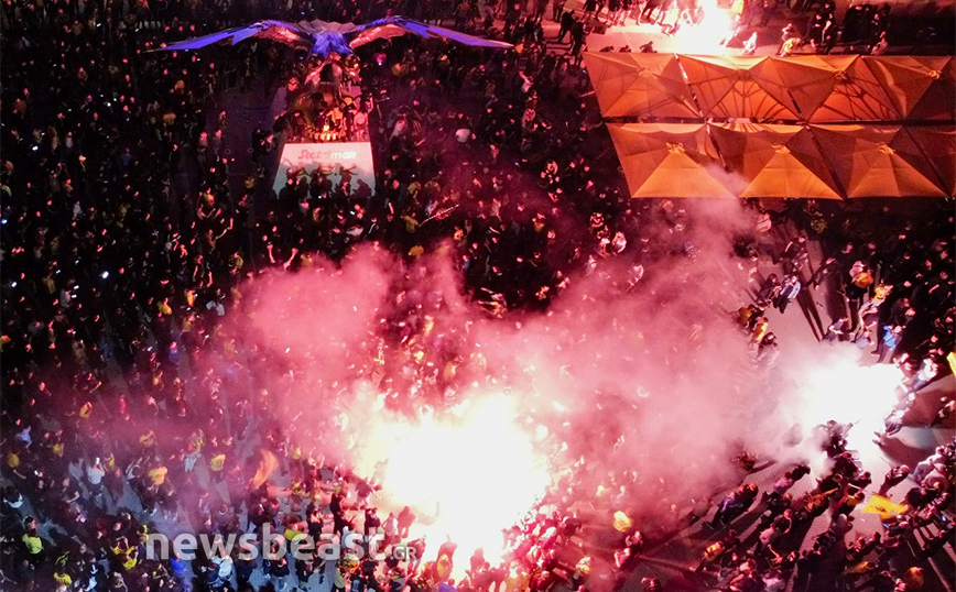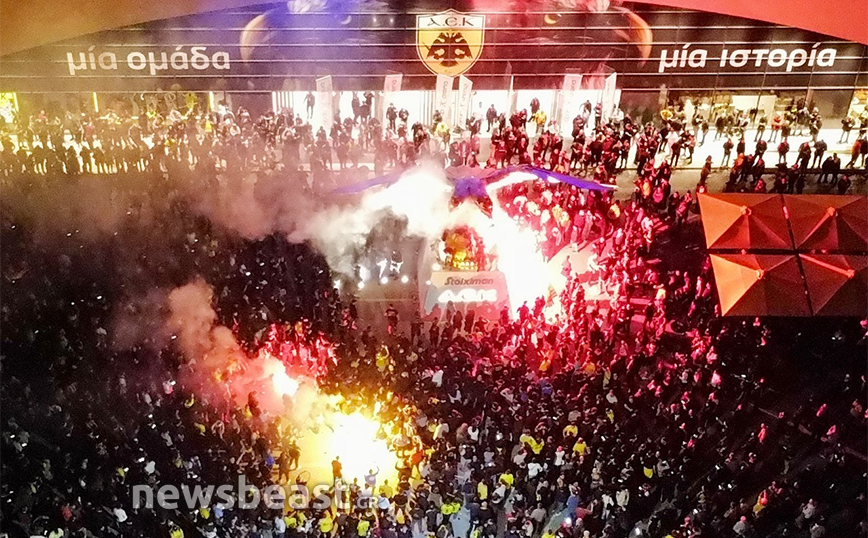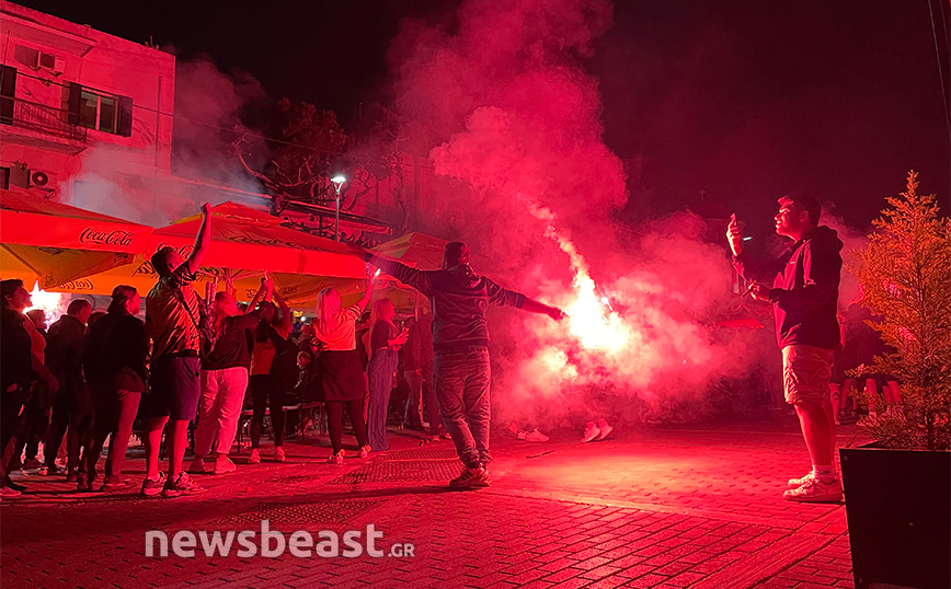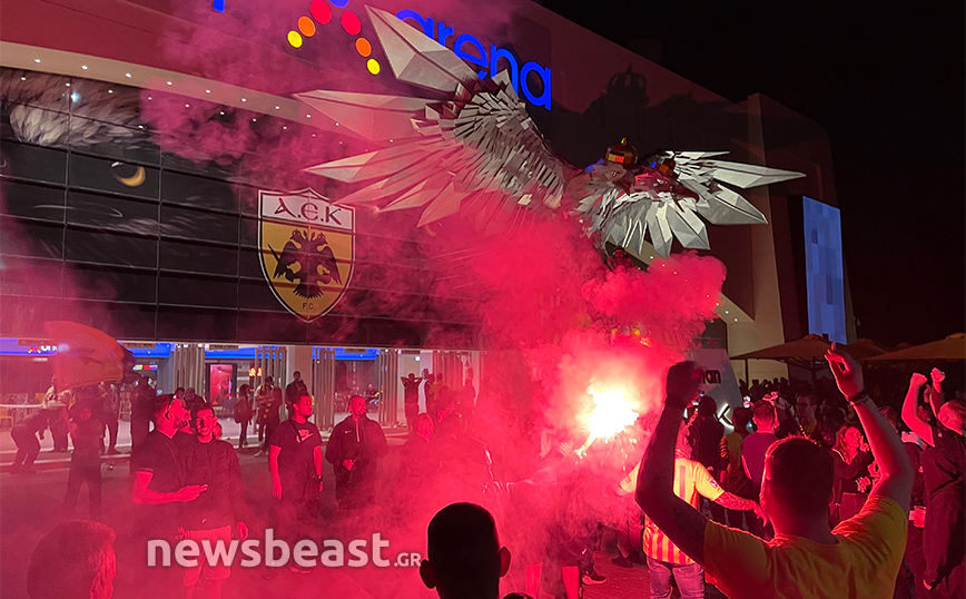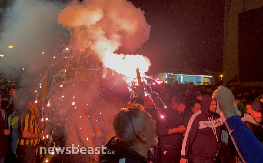 Με την κούπα προ των… πυλών, η Νέα Φιλαδέλφεια εδώ και ώρες βρίσκεται στο… πόδι για τους εν δυνάμει πρωταθλητές με δεκάδες χιλιάδες κόσμου να πανηγυρίζουν και να φωνάζουν για την Ένωση κυματίζοντας τις σημαίες και τα κασκόλ τους, ενώ φυσικά δεν λείπουν και τα βεγγαλικά, που έκαναν τη νύχτα-μέρα έξω από την «OPAP Arena». Το πάρτι, δε, δεν αναμένεται να τελειώσει γρήγορα καθώς οι οπαδοί της Ένωσης περιμένουν την αποστολή από τη Θεσσαλονίκη, η οποία είναι προγραμματισμένη να πετάξει στις 00:50.