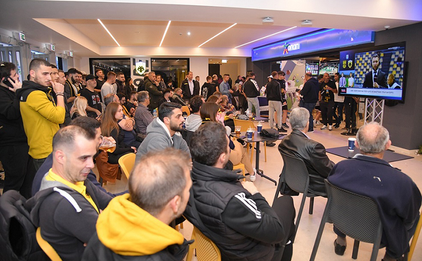 Οι φίλοι της ΑΕΚ κατέκλυσαν από νωρίς το υπερσύγχρονο κατάστημα ΟΠΑΠ για να παρακολουθήσουν την κρίσιμη αναμέτρηση, μετατρέποντας την ποδοσφαιρική βραδιά σε μια αξέχαστη φιέστα.