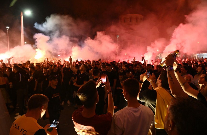 Σε πελάγη ευτυχίας πλέουν οι οπαδοί της ΑΕΚ, που έκαναν τη… νύχτα – μέρα έξω από την OPAP Arena στη Νέα Φιλαδέλφεια καθώς πανηγύρισαν την κατάκτηση του Κυπέλλου Ελλάδας και την ολοκλήρωση του νταμπλ.