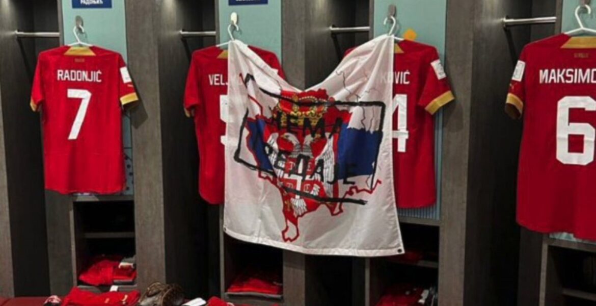 Όμως και οι Σέρβοι, λίγες ημέρες νωρίτερα, είχαν προχωρήσει σε εθνικιστικές προκλήσεις. Σε φωτογραφίες που δημοσιεύθηκαν από τα αποδυτήρια της ομάδας, πριν από το πρώτο παιχνίδι του Μουντιάλ κόντρα στη Βραζιλία, εμφανιζόταν μια σημαία με τον χάρτη της Σερβίας να περιλαμβάνει και το Κόσοβο. Στην επίμαχη φωτογραφία δεν εμφανιζόταν κάποιος παίκτης επίσημα οι υπεύθυνοι της ομάδας ισχυρίστηκαν πως δεν είχαν ιδέα για την εν λόγω σημαία.