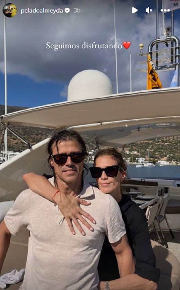 Στην άλλη εικόνα βρισκόταν στην αγκαλιά της συζύγου του Λουσιάνα Γκαρσία Πένα, πάνω στο ίδιο σκάφος και ανέφερε: «Συνεχίζουμε να απολαμβάνουμε». Μπορεί, δε, ο Αργεντινός τεχνικός να βρίσκεται μακριά από την ΑΕΚ στη διάρκεια των διακοπών του, αλλά την έχει και… μαζί του κατά κάποιο τρόπο. Το σκάφος με το οποίο έκανε… βόλτες είχε μια σημαία των «κιτρινόμαυρων».