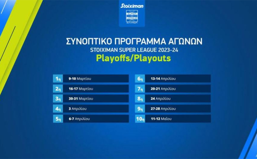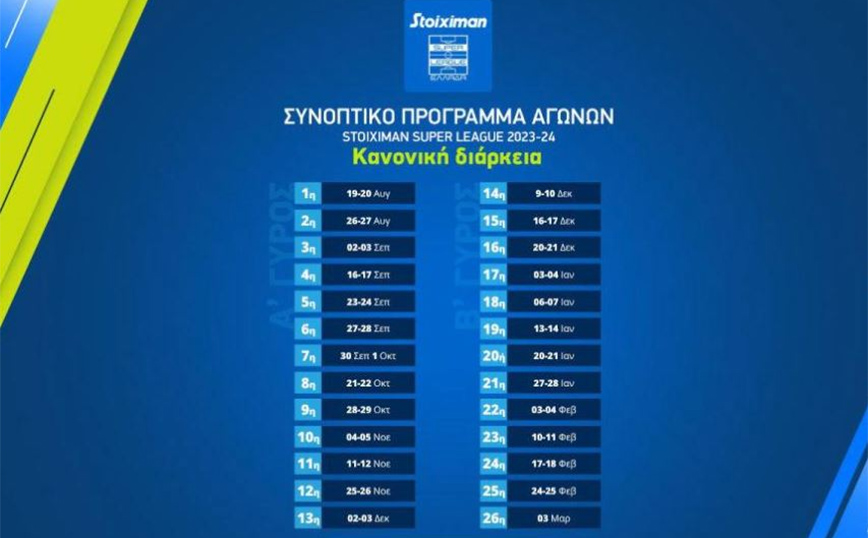 Έγιναν γνωστές οι ημερομηνίες των διημέρων που θα διεξαχθούν οι 26 αγωνιστικές της κανονικής διάρκειας της Superleague, καθώς και εκείνες των διημέρων, που θα λάβουν χώρα οι δέκα αγωνιστικές των Play-offs και οι επτά των Play-out.