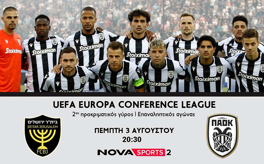 O ΠΑΟΚ ταξιδεύει στην Ιερουσαλήμ, όπου την Πέμπτη 3/8 θα αντιμετωπίσει την ισραηλινή Μπεϊτάρ στον επαναληπτικό αγώνα για τον 2ο προκριματικό γύρο του UEFA Europa Conference League. To πρώτο μεταξύ τους ματς είχε ολοκληρωθεί ισόπαλο χωρίς τέρματα. Ο αγώνας θα αρχίσει στις 20:30 και θα μεταδοθεί απευθείας από το Novasports2. Παράλληλα, την Πέμπτη 3/8, ο Άρης υποδέχεται στο “Κλεάνθης Βικελίδης” την Αραράτ στη ρεβάνς του 1-1 και θα επιδιώξει με τη συμπαράσταση των φιλάθλων του να πάρει το εισιτήριο για τον επόμενο γύρο. Η αναμέτρηση θα αρχίσει στις 21:15 και θα μεταδοθεί απευθείας από το Novasports Prime.