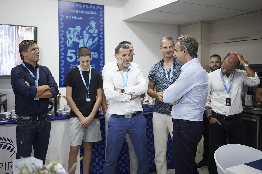 Παράλληλα, ο κ. Μητσοτάκης είχε τη δυνατότητα να συνομιλήσει και με Έλληνες παλαίμαχους ποδοσφαιριστές, μέλη της Εθνικής Ελλάδας που κατέκτησε το EURO 2004, όπως οι Άγγελος Χαριστέας, Άγγελος Μπασινάς, Τραϊανός Δέλλας, Γιάννης Γκούμας και Τάκης Φύσσας.