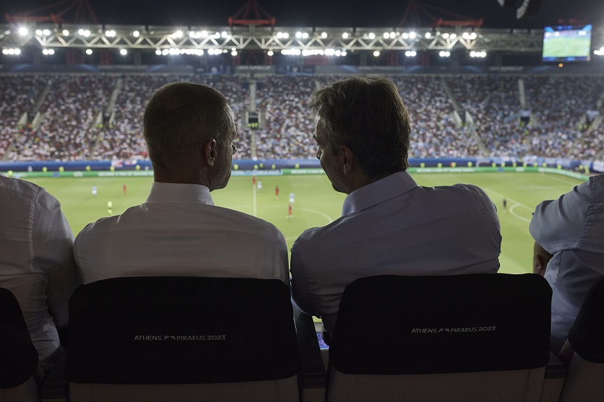 Κάποιες ώρες μετά, το βράδυ της Τετάρτης, αποφάσισε να πάει στο Φάληρο για να παρακολουθήσει τον τελικό του ευρωπαϊκού Σούπερ Καπ και πήρε θέση στα επίσημα μαζί με τον πρόεδρο της UEFA και τον γενικό γραμματέα της ευρωπαϊκής ποδοσφαιρικής ομοσπονδίας, Θεόδωρο Θεοδωρίδη.