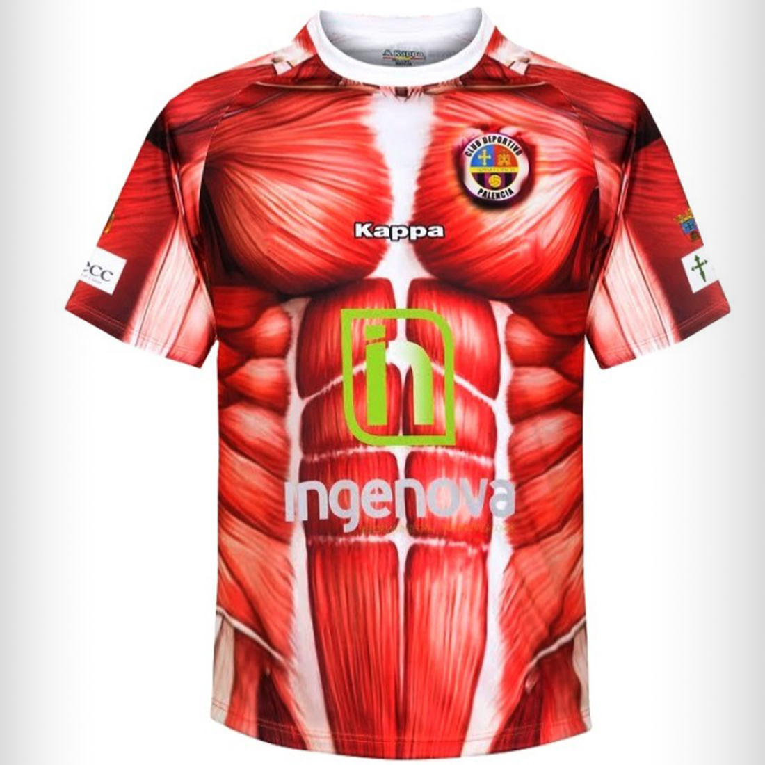 Λίγα χρόνια πριν η ιταλική Ρετζίνα είχε παρουσιάσει μια εμφάνιση με τυπωμένο ένα γυμνασμένο σώμα. Τη σεζόν 2016/17 η ισπανική CD Palencia είπε να το πάει ένα βήμα παραπέρα. Αφαίρεσε το δέρμα από το σώμα και παρουσίασε μόνο μύες, και στη μπλούζα και στο σορτς. Και μάλιστα σε δύο χρώματα, κόκκινο και μωβ. Κατά πολλούς η χειρότερη εμφάνιση όλων των εποχών.